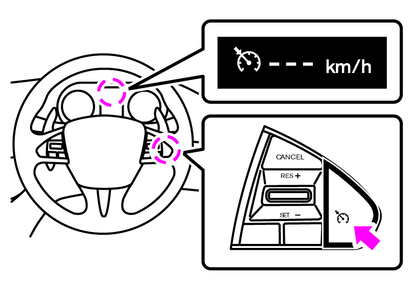 2. 設定したい車速まで加速または減速し、SET-(下押し)を押します。