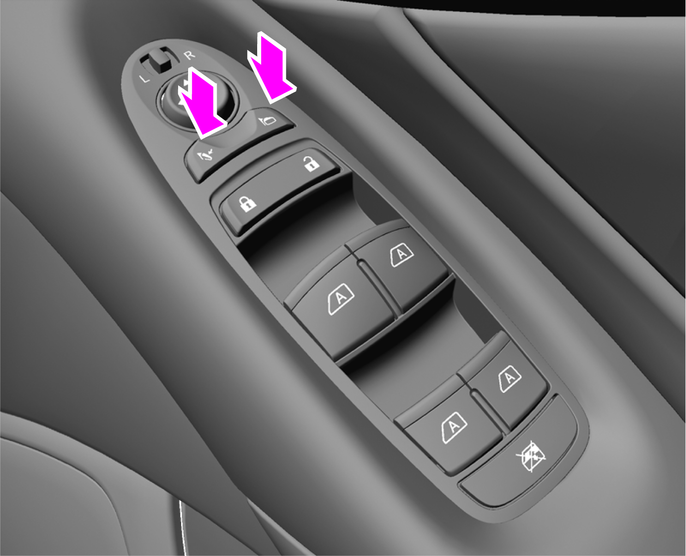 開閉スイッチの左側を押すと、左右のミラー本体が格納されます。