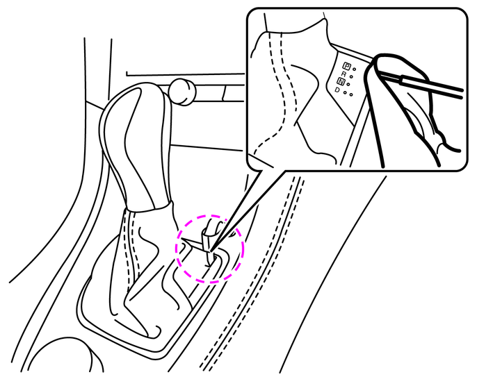 メカニカルキーでシフトロック解除ボタンを押しながらセレクトレバーのボタンを押して、セレクトレバーを動かします。
