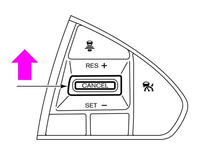設定車速を下げたいときは、SET-(下押し)に押します。