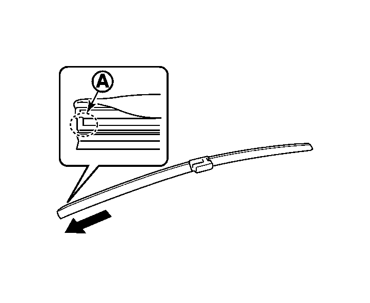 ワイパーゴムのストッパー(A)がない側からブレードに沿って差し込みます。