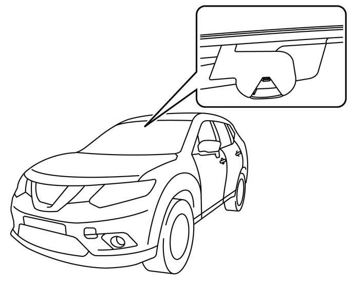 カメラ前方のフロントガラスに車検の検査標章(ステッカー)を貼らないでください。正しい貼り付け位置は日産販売会社にご確認ください。
