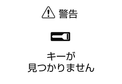 | | 次のときに電源ポジションを切り替えようとすると表示します。 携帯しているインテリジェントキーの電池が切れているとき 登録されていないインテリジェントキーを携帯しているとき