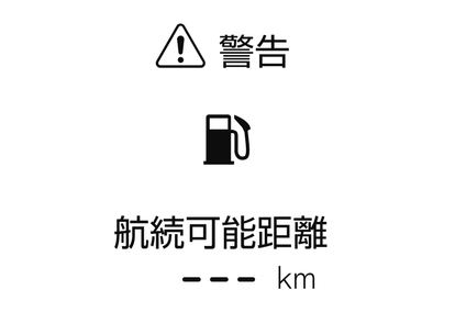 | | 燃料が少なくなると表示します。 残っている燃料で航続可能な距離を表示します。