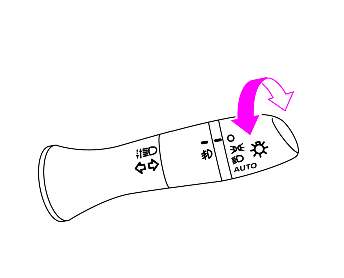 • キースイッチ(電源ポジション)がON以外のとき、ライトスイッチを手前に1回引くと、ライトが約30秒間点灯したあと、自動的に消灯します。