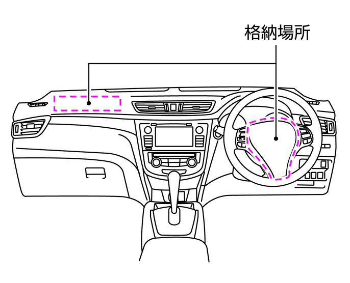 助手席SRSエアバッグは、助手席側インストルメントパネル部に格納されています。乗員がいなくても運転席と同時に作動します。