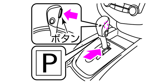 ブレーキペダルを踏んだままボタンを押してセレクトレバーをPに入れます。
