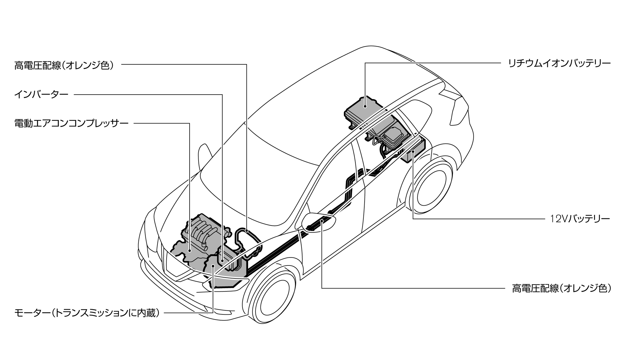 ガソリンエンジン、モーター、リチウムイオンバッテリーを効率的に組み合わせて走行する自動車です。日産独自の高性能ハイブリッドシステムで大幅な燃費向上と動力性能を達成しています。