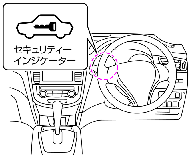 イモビライザーが働いているときは、セキュリティーインジケーター(