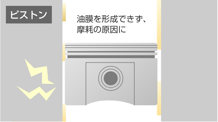 0W-20 を使用すると、ギアにオイルが絡みつかず、エンジン内部へのオイル供給が不十分となり、エンジンの焼き付きなどの不具合の原因となります。