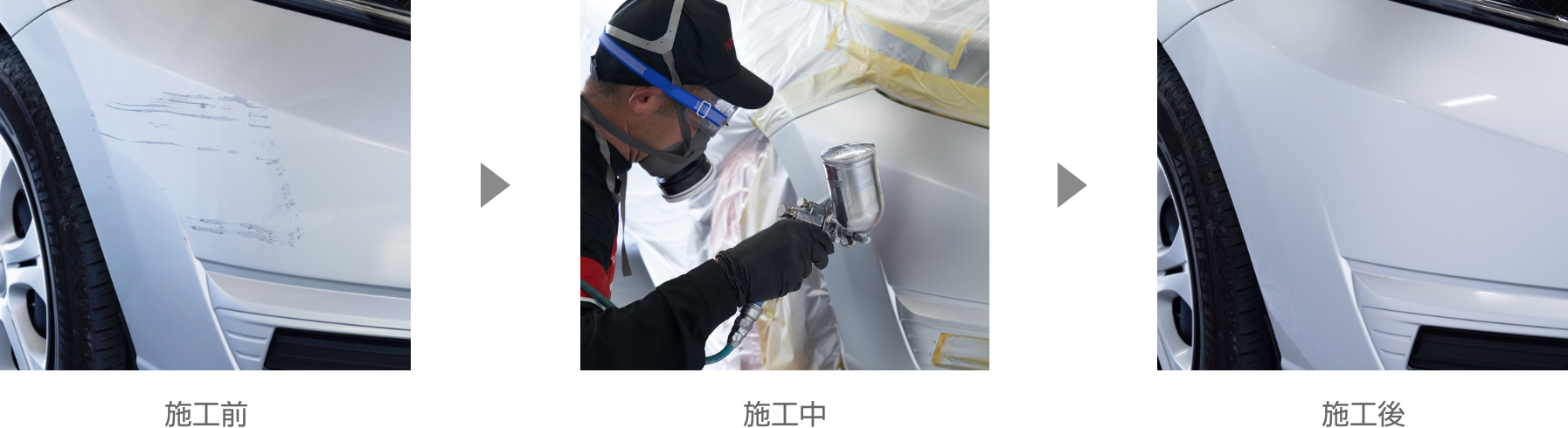 計量調色+微調色で、本格塗装と同じ精度の高い色あわせを行います。仕上がりはほとんど他の部分と見分けがつきません。