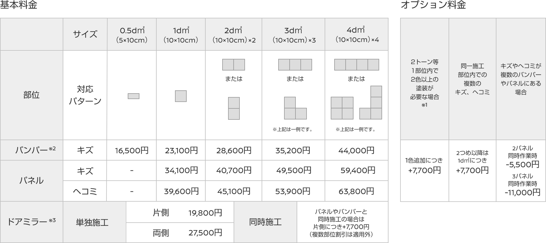 - ※塗装範囲・塗色数によって追加料金が発生いたします。