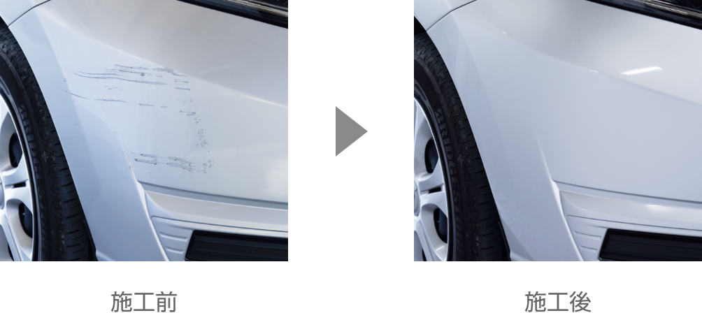 はがき約2枚半分(10cm×40cm)までの大きさで、フード、ルーフ、トランクなど水平面を除く垂直面のキズ・ヘコミをお手軽な価格で修理します。プロの技術で、キズやヘコミがどこにあったのかわからないほどキレイに仕上がりますので、気になるキズ・ヘコミがあれば「クイックプロペイント」で直しましょう。