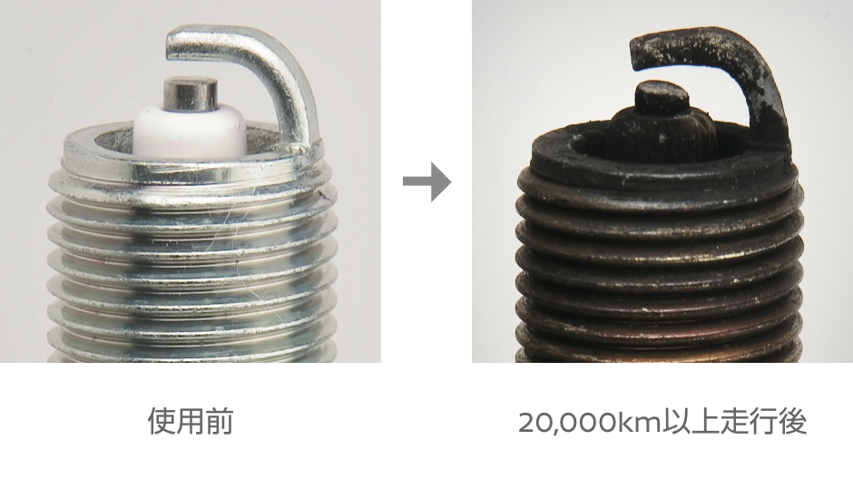 この燃料を燃やすために着火させるのがスパークプラグです。