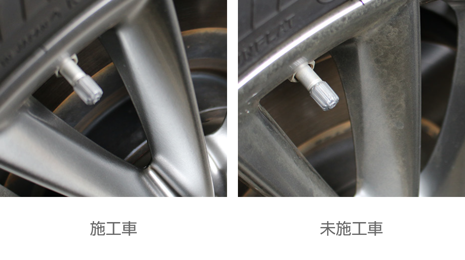 ※ホイールの脱着を行わないため、ホイールの外側面のみ施工となります。