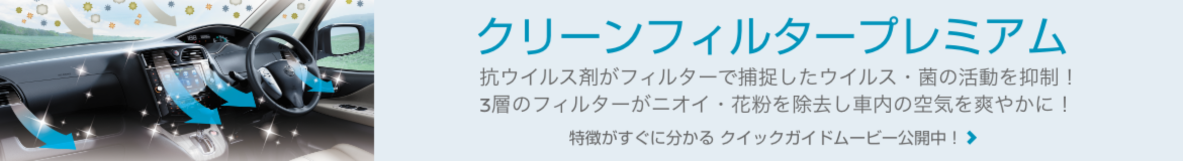 外気から取り込む空気を清浄するのと同時に、車内の空気循環で室内に入った花粉もキャッチします。