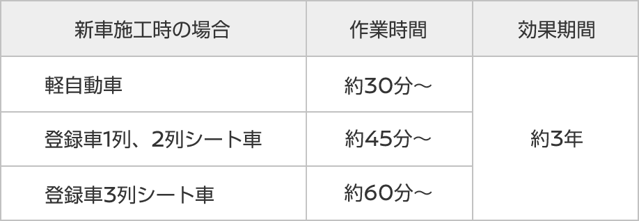 日産自動車の試験基準を満たしており、効果は3年持続します。
