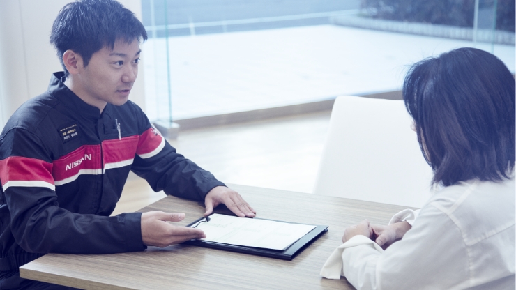 EV(電気自動車)に精通したテクニカルスタッフが、日産独自のコンピューター診断機を用いて、お客さまのおクルマを6ヶ月ごとに最長5年間点検・整備。