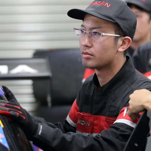 今シーズン、日産販売会社のメカの皆さんと日産自動車大学校の学生の方々と一緒に仕事が出来た事にとても感謝しております。参加頂いた皆さんは、「日産メカニックチャレンジ」その名の通りチャレンジングな年の中、チームの輪に瞬時に溶け込み、非常に心強かったです。鮮明に覚えているのは、走行を終えた後、タイヤの表面に付いたゴムカスなどを一生懸命とって頂いていたこと。走行後のタイヤは80度から90度近いのでとても熱いですし、タイヤは路面に直で接するので非常に大事なパーツです。この大切な作業に懸命に取り組んで頂いていたのを見て、「僕も頑張らなくては!」という気持ちになりました。最終戦は、トラブルを抱えてしまい最終的には6位でしたが、第1Stintまではトップで快走していました。結果を残すのも大事ですが、56号車の速さをファンの皆さんに御見せ出来たことは良かったと思います。今シーズンは、本当にあっという間でしたが、皆さんと一緒に仕事が出来た事で自身のレーシングライフにまた貴重な経験を積むことが出来ました。1年間、本当に有難う御座いました。