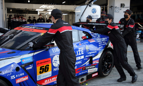 悲願の初優勝を達成した2020年の最終戦から4ヶ月弱。2021年の開幕戦は2年ぶりに岡山国際サーキットで開催され、今回は4名のテクニカルスタッフが参戦した。予選、公式テストから好調な56号車は4位のタイムをマーク。好ポジションで臨んだ決勝では冒頭から激しいトップ争いが巻き起こり、2度のセーフティーカー導入など波乱の展開となるが、綿密に作戦を練っていた56号車は好位置をキープ。ピットインでは高い整備力を見せつけ見事トップに浮上する。最後まで2位との攻防が続いたが0.4秒差で開幕戦優勝を達成。1位から4位までが1秒差という大接戦のレースを制した。