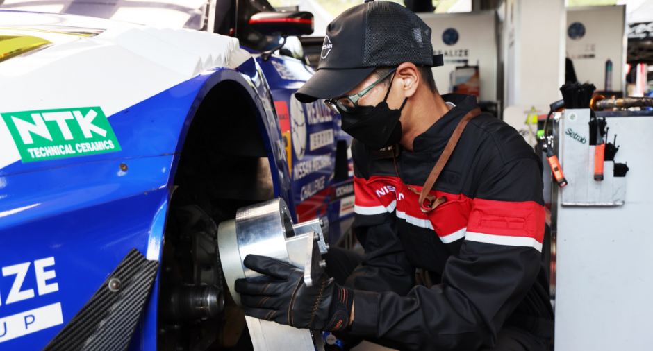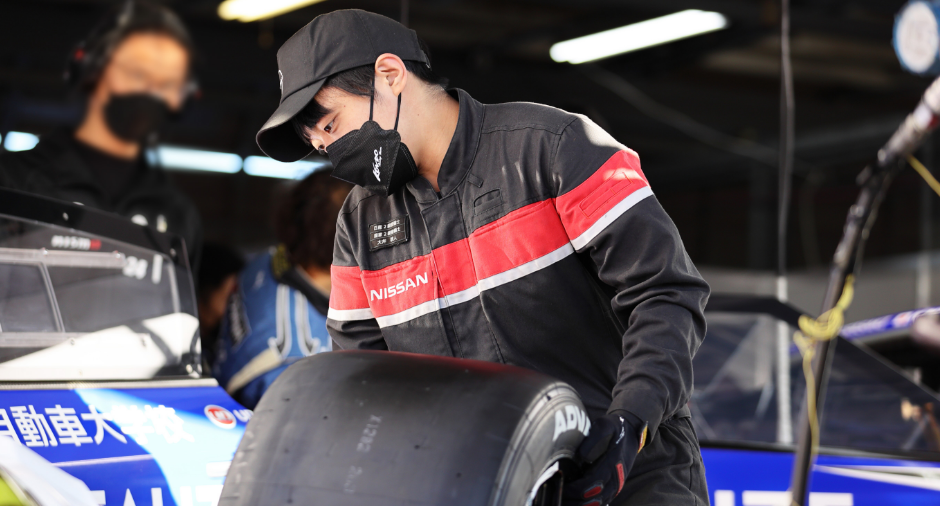 日産メカニックチャレンジへの参加は、自分にとって非常に良い経験になったと思う。まず何と言っても、国内最高レベルのレースシーンで活躍するGT300マシンに直接触れることができた歓び。それから、ファクトリーでの事前整備やサーキットのいろいろな場面で、整備に関するノウハウやレース車両特有のメカ知識、レースでの裏話などを、チームの方に直接聞けたこともこのプロジェクトならではの価値ある体験だった。そこで印象に残ったのは、常に目標とする調整値に妥協することなく挑んでいくストイックな取り組みだ。その緊張感はサーキットの現場に移動してから、さらにピリピリと高まっていった。整備作業のポイントは理想的な設定値の追求から、より実戦的なセッティングへと移っていく。たとえばテスト走行ごとに、気温や路面状況に応じてタイヤの空気圧をきめ細かく変えて比較検討する。ファクトリーで何度もやり直して得た理想的な調整値を、今度はサーキットのコンディションに応じて、さらに細かく変更していくのだ。