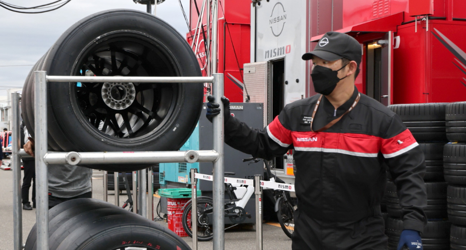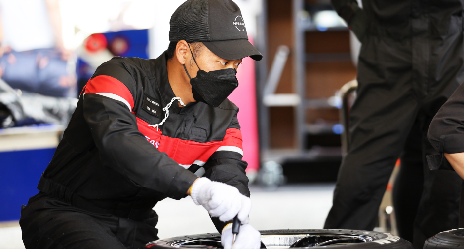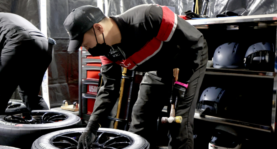 レース車両と一般車両とでは設計が異なる部分は多いが、特に走りに関わる足回りについてはまったく別物だと思った。パーツやサイズの違いはもちろんだが、チューニング作業が非常にやりやすい構造になっていることに驚いた。足回りでは、やはりホイールアライメントの念入りな調整が印象に残ったが、タイヤマネージメントにも同様のシビアさが求められることを知った。サーキット入りした後、ピット内では主にタイヤの調整をサポートした。空気圧の重要性は一般的なレベルとしては理解していたが、レースでは天候、気温、湿度、路面状態、走行距離など、実に多くの要件がタイヤのセッティングに影響を及ぼす。わずかなコンディションの違いでタイヤの性能は左右され、それに対応する調整が必要だ。タイヤマネージメントの難しさと厳しさを強く実感した。