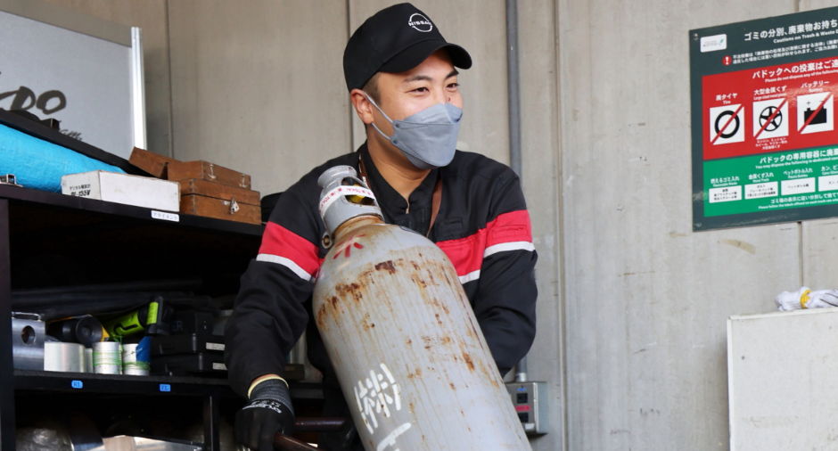 レース車両は、一台のマシンに対してメカニック全員で整備を行う。たとえば、エアジャッキを使って車両を上げ下げする際は、安全のために決められた合図を必ず出すことが徹底されていた。作業スピードが重要なのはもちろんだが、安全管理とチームワークの大切さを痛感した。