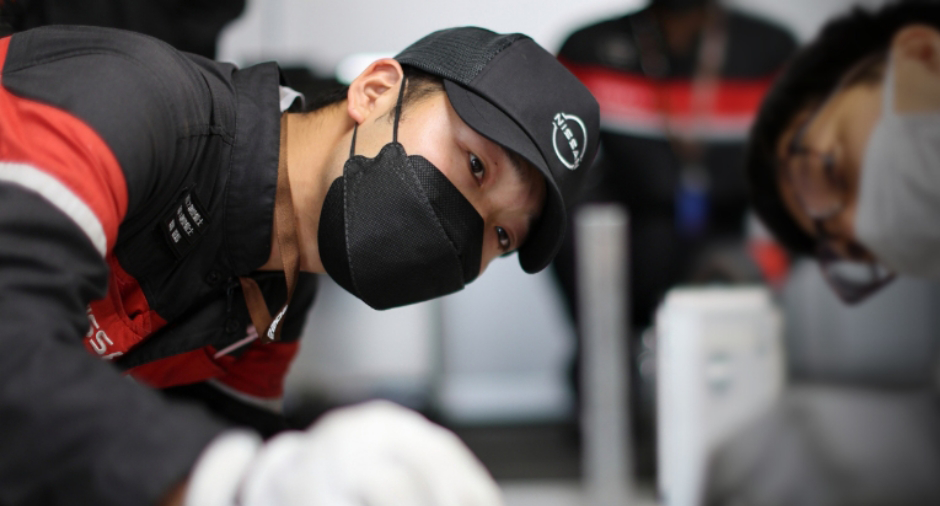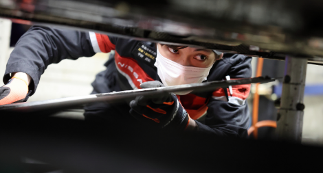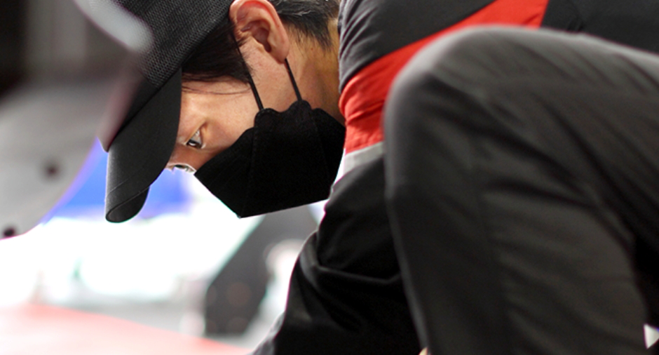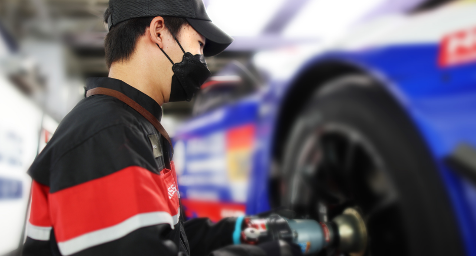 レースメカニックがひとつひとつの作業に全力を込めるプロ意識は、私たちの日常業務にも共通するものだと気づいた。お客さまのお車を大切に扱い、丁寧に点検・整備を行うことこそプロ意識なのだと思う。レースカーにも一般車にも最重要な「安全」という目的のために、我々は存在するのだと意を強くした。