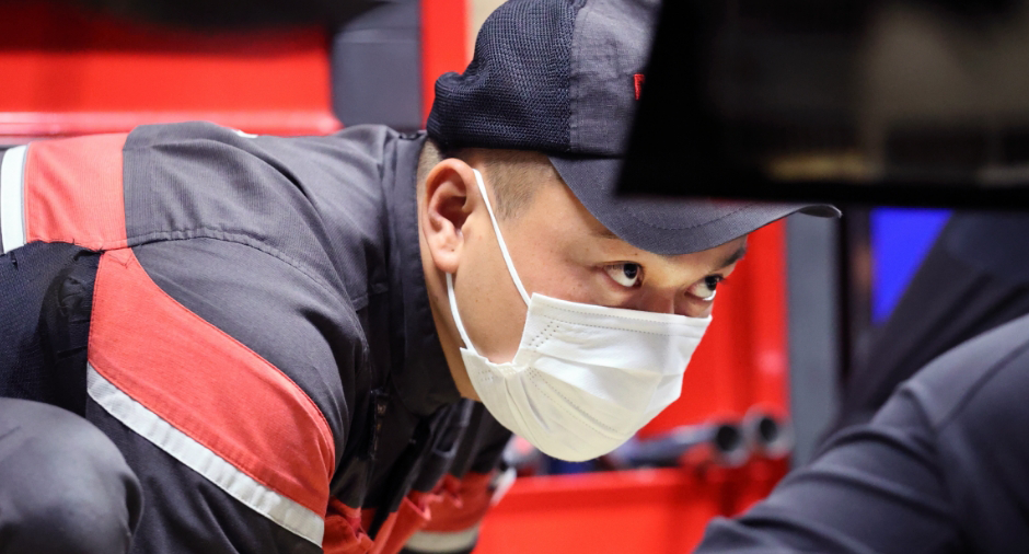 給油などガソリンを扱う際は、必ず消火器を準備する。当然のことだが、自分の職場でも安全管理の徹底を改めて心がけたいと思った。