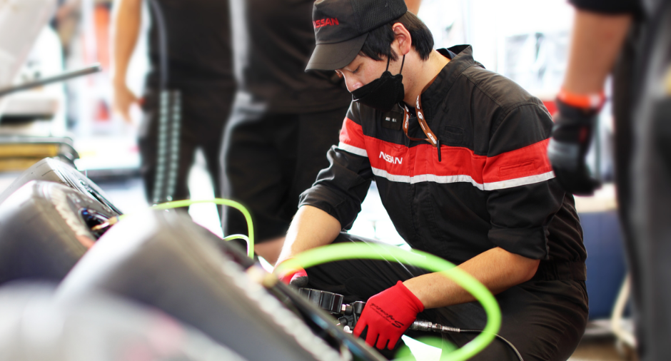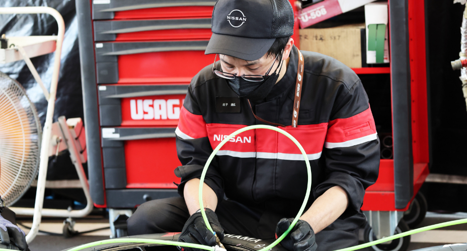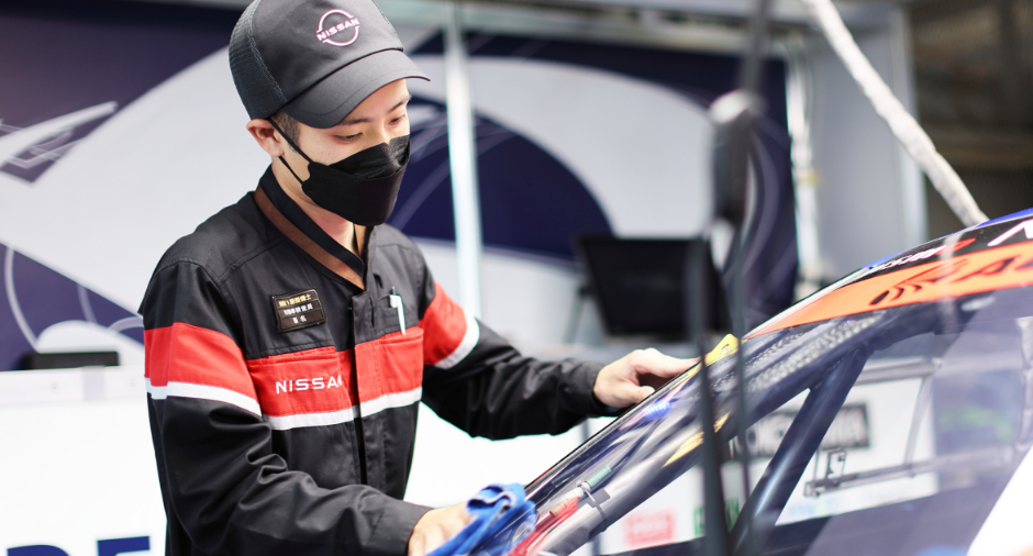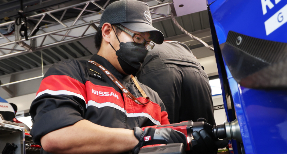 日産メカニックチャレンジの魅力は、何といっても本物のGT300マシンを整備できることだ。GT-R認定メカニックを目指す自分にとって、とても良い経験になったと思う。実は自動車大学校時代にも、レースメカニックのサポートに参加したことがあった。その時よりも車両に触れるチャンスはずっと多いらしいと聞いて、期待を膨らませていた。