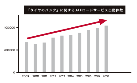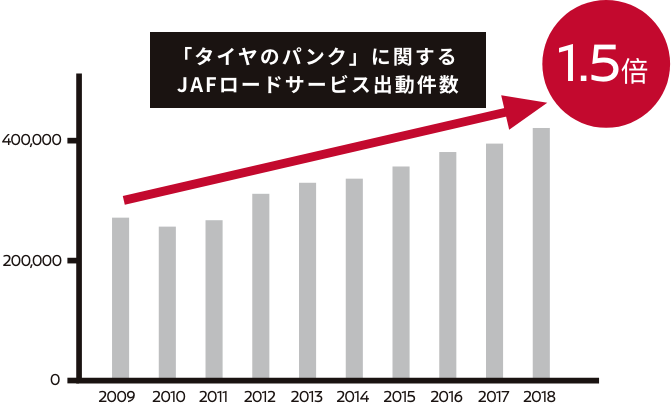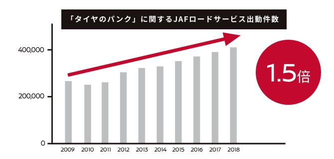 ここ10年で、タイヤトラブルの件数は1.5倍に。