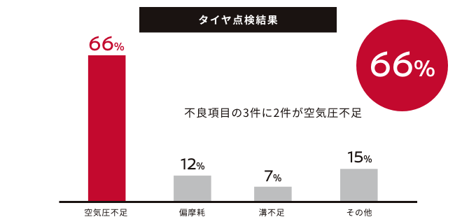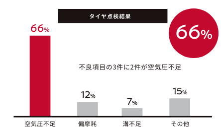 ある調査によると、点検で確認された不良項目の3件に2件は空気圧不足との結果もあります 。