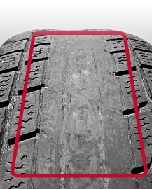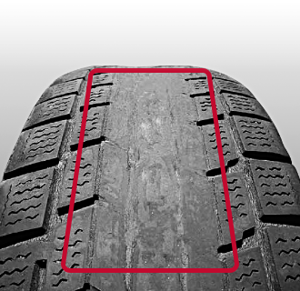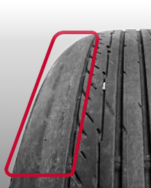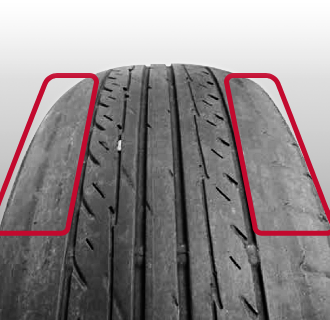 タイヤ空気圧が低すぎると両端がすり減る「両肩摩耗」が、逆に高すぎると真ん中が削れる「中央摩耗」が発生しやすくなります。