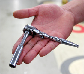 石橋さん愛用の工具(ラチェット)。「握り心地が良くて、長く使っています。小さな工具選びも、大切にしますね」