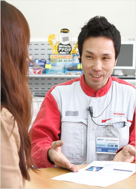 「ご要望を聞くのはもちろんなのですが、お話を聞くうちに整備の仕方も変わってくるんです。たとえば、クルマの使用状況は、人それぞれ違います。クルマに乗るペースも毎日なのか、週1回なのか。それによって、部品の傷み方や消耗の仕方も変わります。『あんまり乗られないから、次回で十分』、『1か月の走行距離が長いので、次の点検では間に合わない』など、クルマのコンディションに応じてアドバイスができます。整備のタイミングはクルマを大切に扱う上でとても重要ですから」