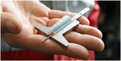 整備士になったばかりの頃、当時の工場長にもらったディプスゲージ。いまも大切に使っている。