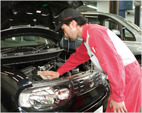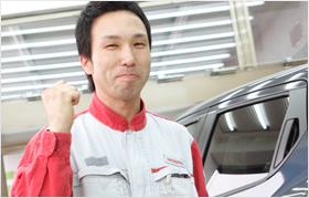 修理したクルマをお客さまが笑顔で受け取ってくださったときが最高。そう語る安藤さんは、難解な不具合を専門に修理するチームに1年いた。整備士の中でも選ばれた人間だけが集まる少数精鋭のチームだ。