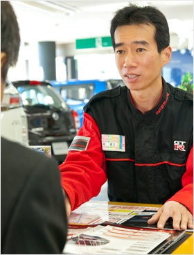 「受付から納車まで、GT-Rのお客さまは私がすべてを担当します。こうすることで、直接お客さまにお聞きした話を整備に生かしています。たとえば、サーキット走行の直後はすぐに保証点検をしますし、ほとんど車庫に眠っているクルマはバッテリーの点検に慎重になります。『どのように使われているか』は整備をするうえでとても重要です。さらに、GT-Rは300km/hまで出せるスーパーカー。専用の整備項目があり、街中走行に適した調整が必要なこともあるんですよ」
