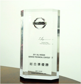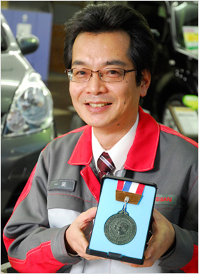 1つのメダルを見せてもらった。1996年全国日産サービス技術大会4位。これを大事そうに眺める一田さんは言う。若い整備士たちを育てるパワーと熱い思いはここから生まれていると。