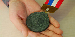 「入社して6年目のときに、私が出場して勝ち取ったメダルです。それまで社内で入賞した人がいなかったので、ものすごく喜んでもらえました。そのときの上司が、『このメダルは青銅だから、磨けば光るんだよ。これから磨いていけ』と言ってくれて。それがあるから、技術大会に挑む選手を教えるパワーが出るんです。教え子である彼らの方がもっとキラキラしたメダルを持って帰ってくるので、それも嬉しいんですけれどね。でも、私にはこの青銅のメダルが似合っているんです。