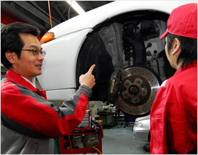 店舗の支援をしながら、私の持っている経験や勘など、技術を超えた部分もお店に伝えています。日々の鍛錬や技術大会によって進化し続ける整備士たちが、皆さまの愛車を守ります。