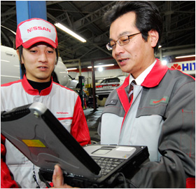 『全国日産サービス技術大会』は、全国の販売会社の中でも、地区予選を勝ち進み、選抜されたサービススタッフが日ごろの成果を競い合う大会