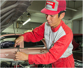 古いクルマを大事に乗られているお客さまのために、 私のように整備士として、長くこの仕事に携わってきた者の経験が求められます」