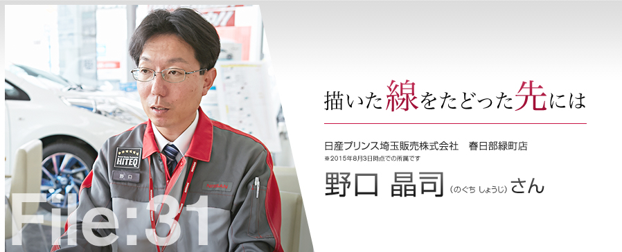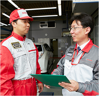 今、野口さんは『一級会』なるものに入っている。各資格の1級を持っている人だけがいるスペシャリストの集団だ。その中でも、資格取得をバックアップするチームに所属し、若手の育成に力を入れている。 そんな彼が日産マスターテクニシャンの資格を更新し続けるのは、若手の育成のほかにも理由がある。それは、お客さまに納得していただける整備と、ありがとうと言っていただけるような完璧なサポートをお届けしたいと願うから。かつて試行錯誤しながら配線図を描いたように、今はそのイメージを現実にするための設計図を描いているのかもしれない。