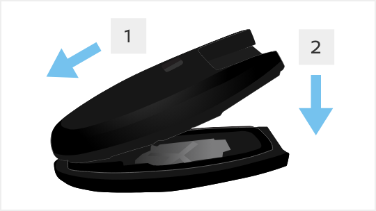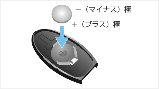 古い電池を取り出し、新しい電池の+極を下側にしてはめ込みます。