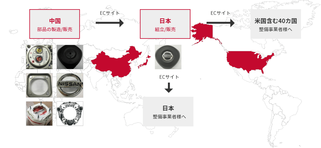 近年、日産の製品を装ったエアバッグ、オイルフィルター、ブレーキパッドなどの模倣品が日本国内を含む世界各地に出回っております。模倣品は弊社が研究開発して作り上げたプロセスで製造されておらず、純正部品と同等の品質基準を満たしていない恐れがあるため、使用したことにより大きな事故につながる可能性が高く、大変危険です。