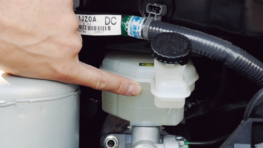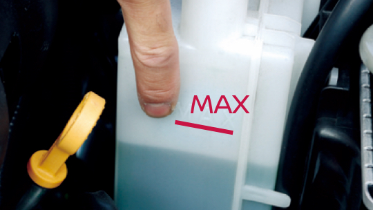 リザーバータンクの液面が上限(MAX)と下限(MIN)の間にあるか確認します。