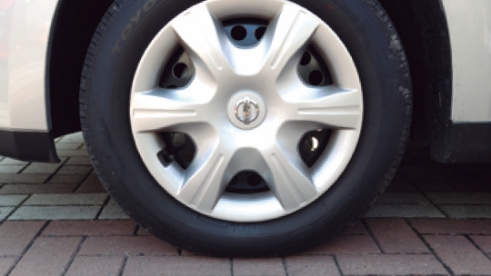 タイヤに亀裂や損傷、異常摩耗がないか、溝の深さは十分か、スリップサインが出ていないか確認します。