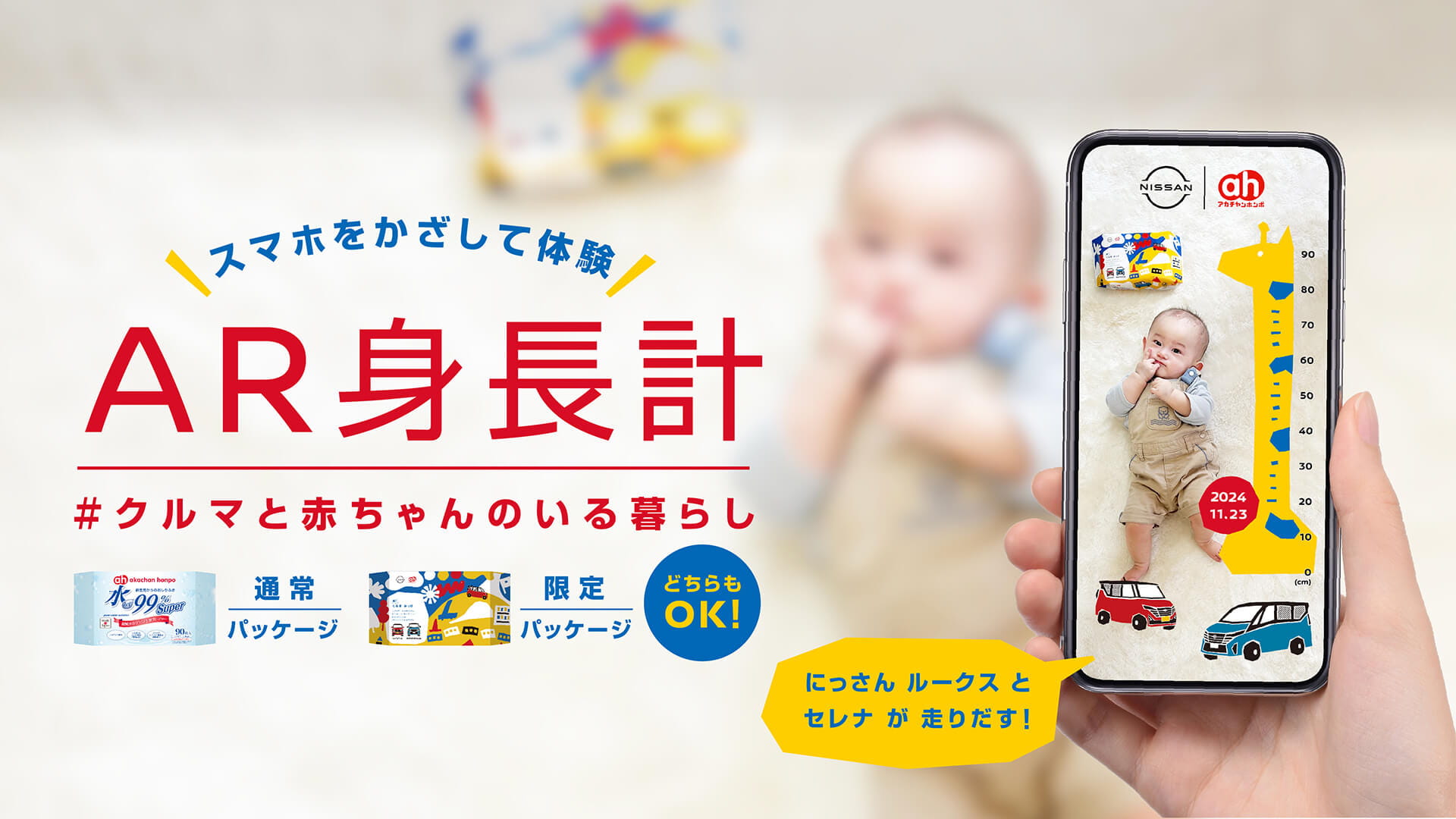 クルマを通して家族の思い出作りを サポートする日産と、赤ちゃんのいる 暮らしをサポートする アカチャンホンポは、思いをひとつに、 “クルマと赤ちゃんのいる暮らし”に 関する取り組みを行なっています。