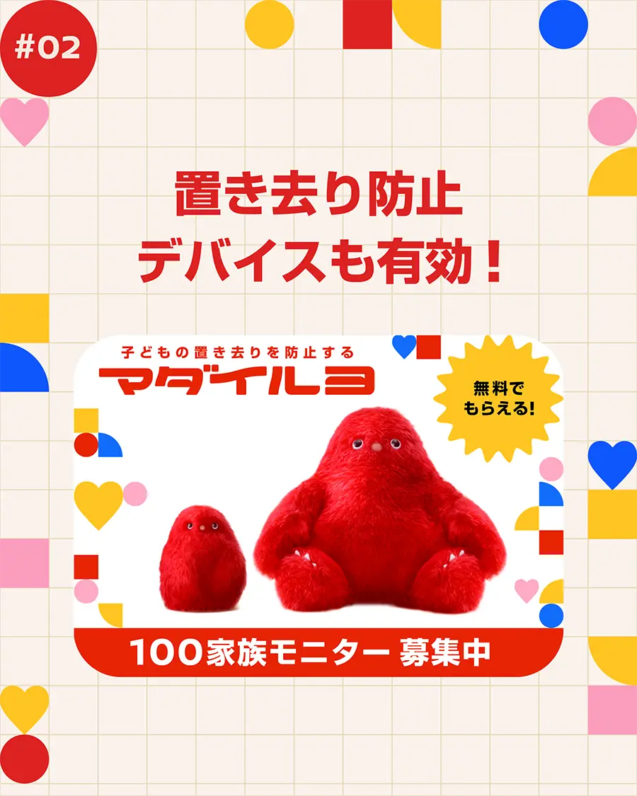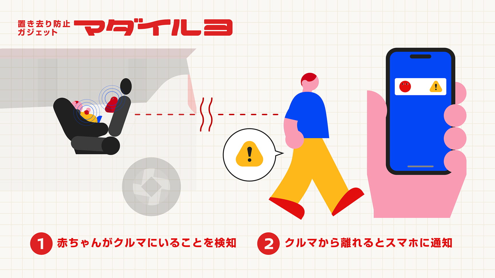 置き去り防止ぬいぐるみ「マダイルヨ」を
